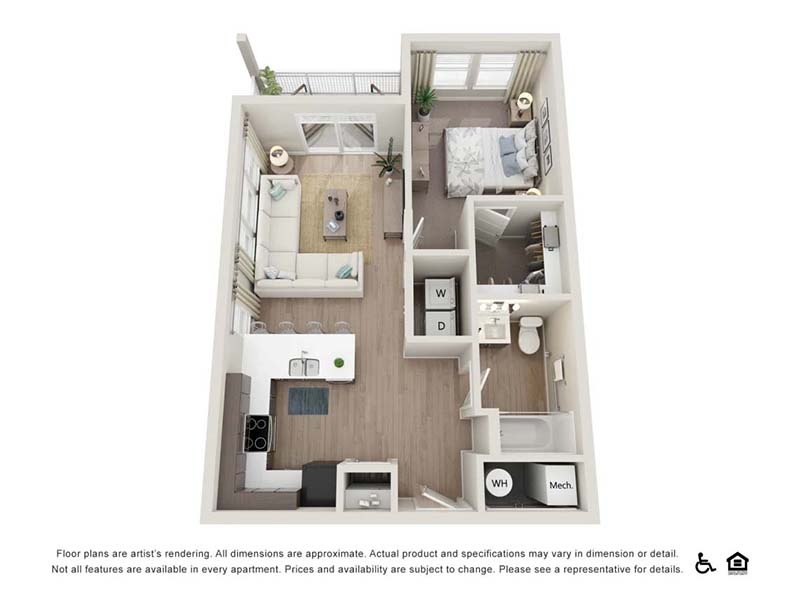 1 Bed, 1 Bath, 727 sq ftAvailable NowModel Gallery