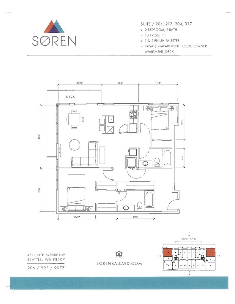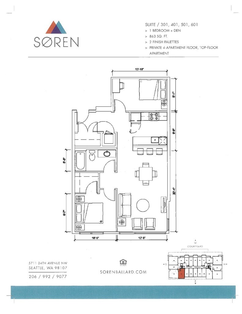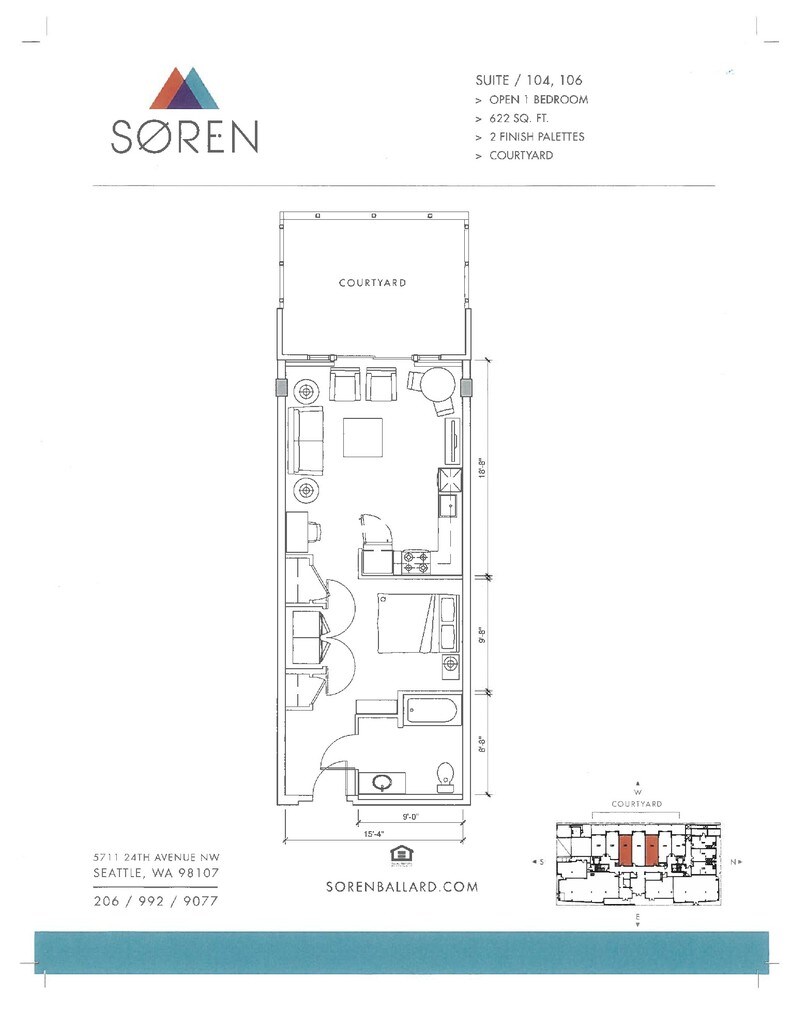 Inspired by Ballard's Scandinavian roots, Soren is focused on functionality and passion for life. Well-planned live/work, open 1 bedroom, true 1 bedroom and 2 bedroom LEED Gold inspired design provides you with a comfortable space you can feel good about. Recycling stations on every floor and LED lighting in every home assist in your efforts for lower consumption, and lower bills! Green seal carpets and low VOC paints make breathing easy. High ceilings, expansive views, and a landscaped rooftop plaza to assist in your daily unwind.