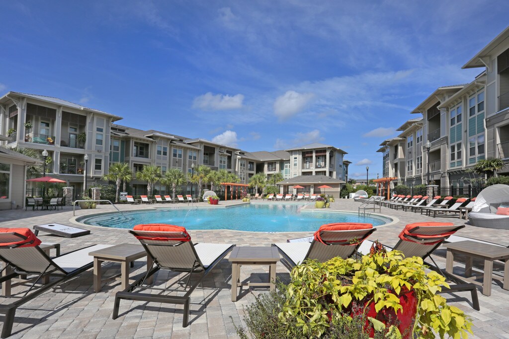 August 9, 2015This BRAND NEW gated luxury apartment community is located in a convenient location, far enough from traffic to prevent noise, but still very close to shopping, the beaches, and the naval base. Also, it is only a 20 minute drive to downtown and the Jacksonville International Airport. The staff here is incredibly friendly and very helpful. The apartments and community grounds are absolutely gorgeous! There are 1, 2, and 3 bedroom units to choose from and there are even options to rent on-site ...storage units and garages. I chose to rent a garage and was surprised at the size... it's HUGE! Community amenities include a beautiful saltwater pool that looks like it came right from a five-star resort, several outdoor grilling/dining areas, a 24hr on-site gym facility, a beach volleyball court, and a wonderful clubhouse with Wi-Fi internet and computers/video game systems for use. The apartment floorplans offer an open, spacious feel. I live in a 3 bedroom, 2 bathroom unit and every bedroom has plenty of space for a queen-size bed (master will easily accommodate a king-size). Each room also has an enormous walk-in closet, a ceiling fan, and double window for plenty of natural light. The finishes in the apartment are beautiful... granite counters in the kitchen, tile backsplash, pennant lighting over the breakfast bar, glass shower enclosure in the master bath, and crown molding throughout. The corner units have no walls adjoining neighboring apartments which makes life here incredibly quiet! Additionally, the corner units come with a very spacious wrap-around balcony/patio with plenty of space for some outdoor seating. Each apartment also has FULL SIZE in-unit washer and dryer, making life very convenient. I have lived here for a month now and absolutely love this place! I highly recommend this community!Read MoreReview from Apartments.com
