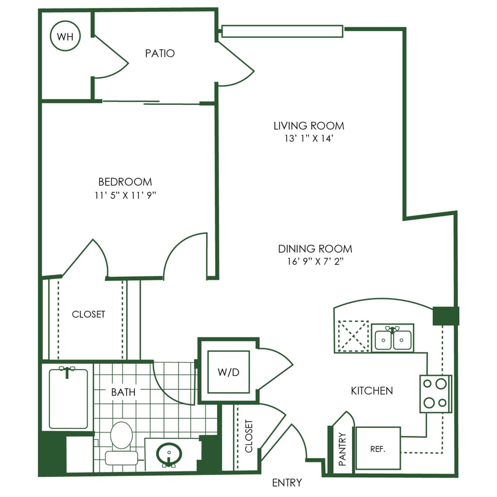 Apartment Model: A1From $2,6581 Bedroom, 1 Bath, 874 sq ftAvailable NowFloor plans are artist's rendering. All dimensions are approximate. Actual product and specifications may vary in dimension or detail. Not all features are available in every rental home. Please see a representative for details.