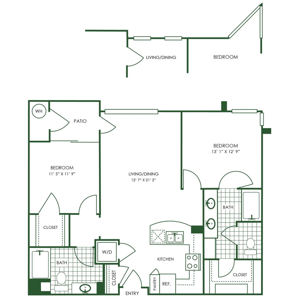 2 Beds, 2 Baths, 1351 sq ftAvailable NowLargest 2 BedroomThis is the largest 2 Bedroom at this PropertyModel Gallery