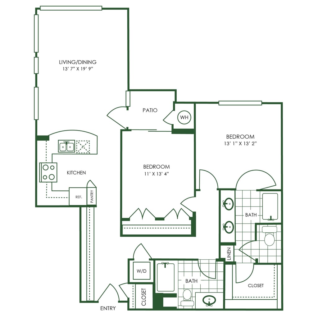 Apartment Model: B1From $3,5452 Bedroom, 2 Bath, 1168 sq ftAvailable NowFloor plans are artist's rendering. All dimensions are approximate. Actual product and specifications may vary in dimension or detail. Not all features are available in every rental home. Please see a representative for details.