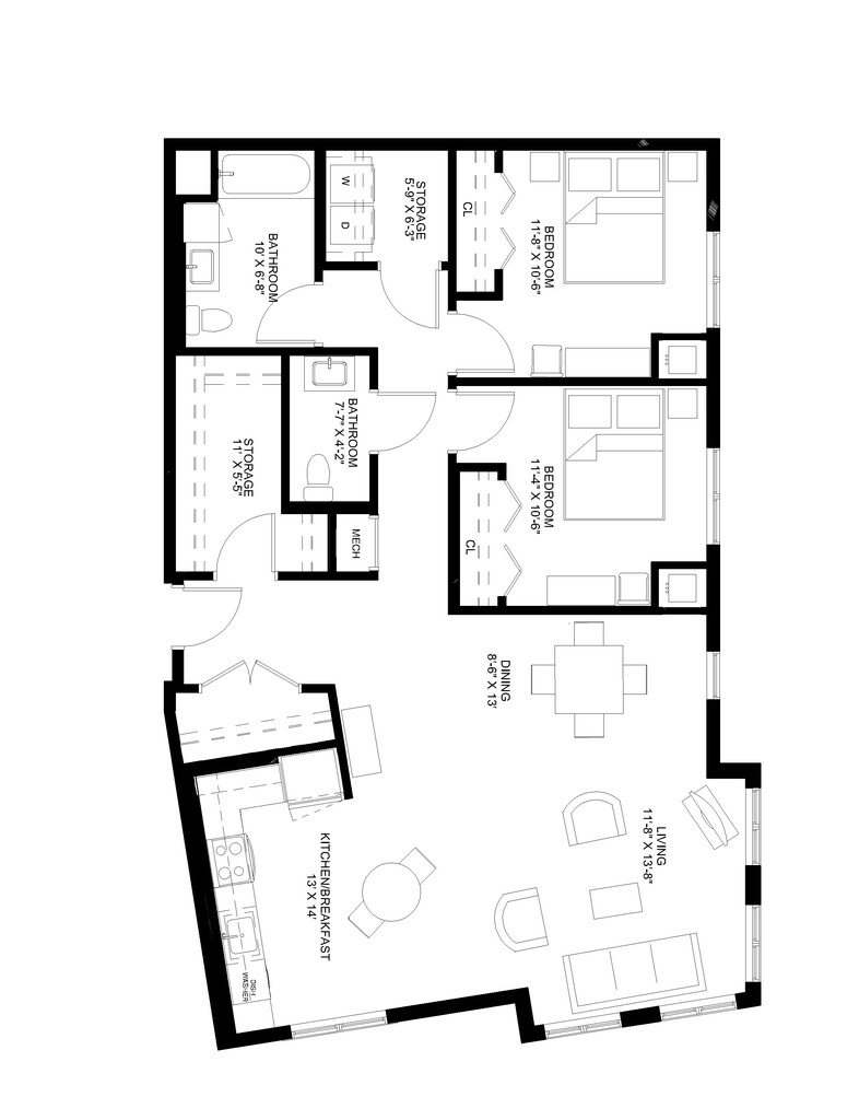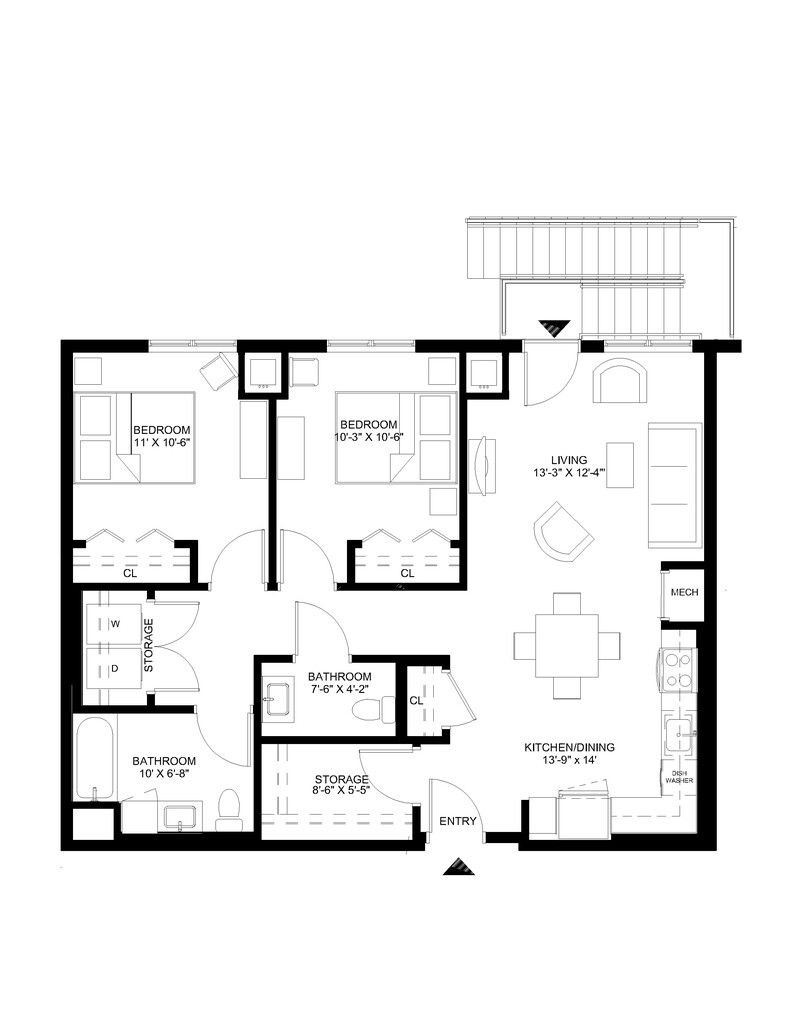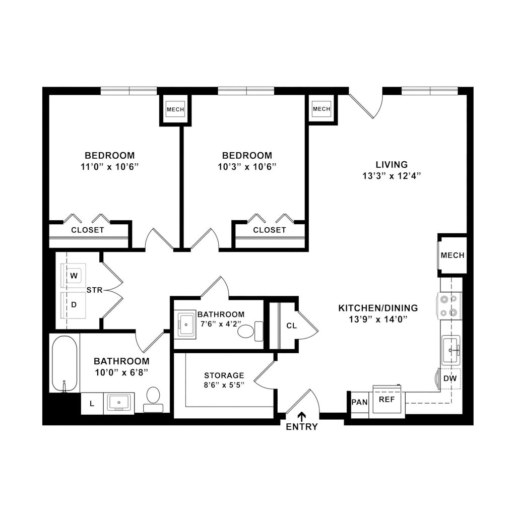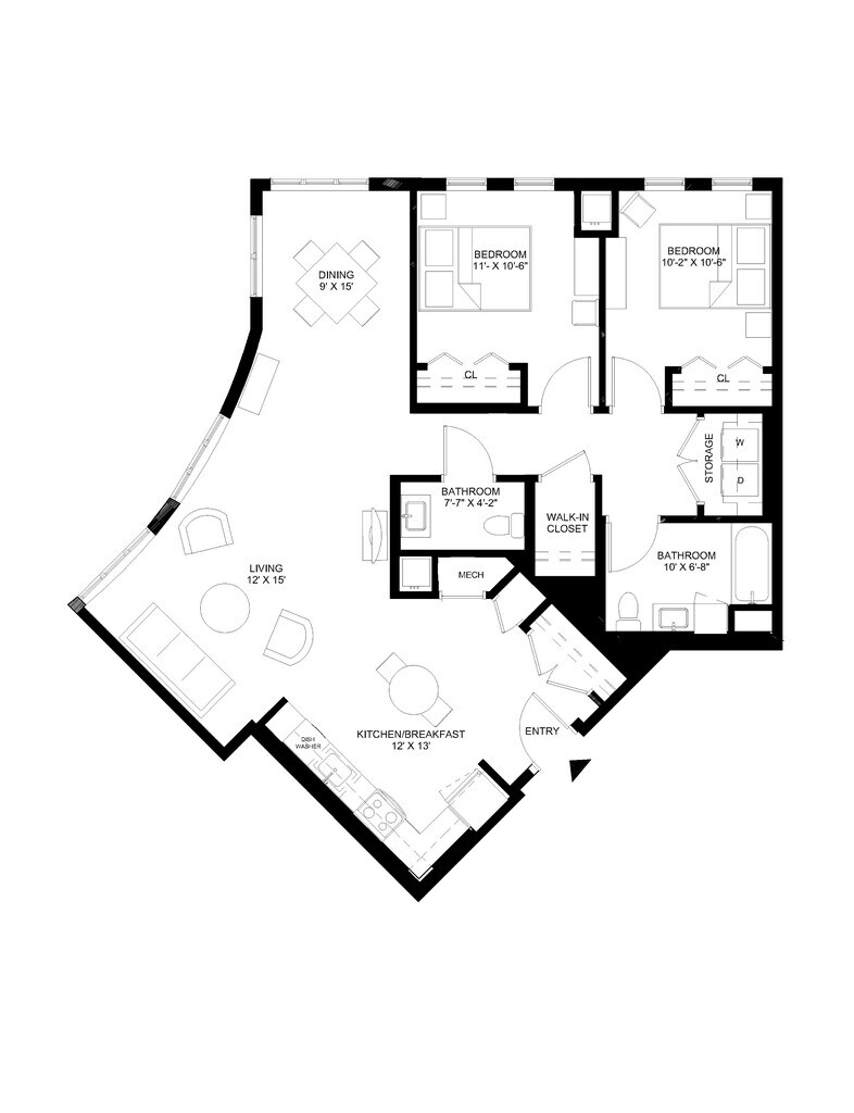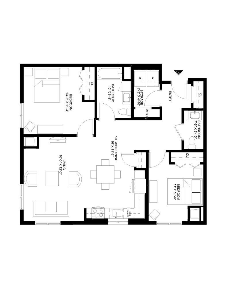 Apartment Model: 2x1.5 B$2,5992 Bedroom, 1.5 Bath, 1076-1300 sq ftUnavailable![]()