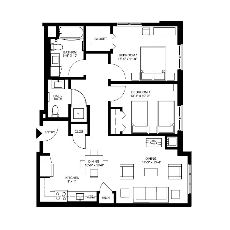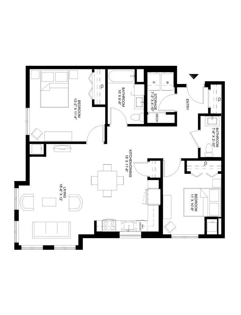 2 Beds, 1.5 Baths, 973-1306 sq ftModel Gallery