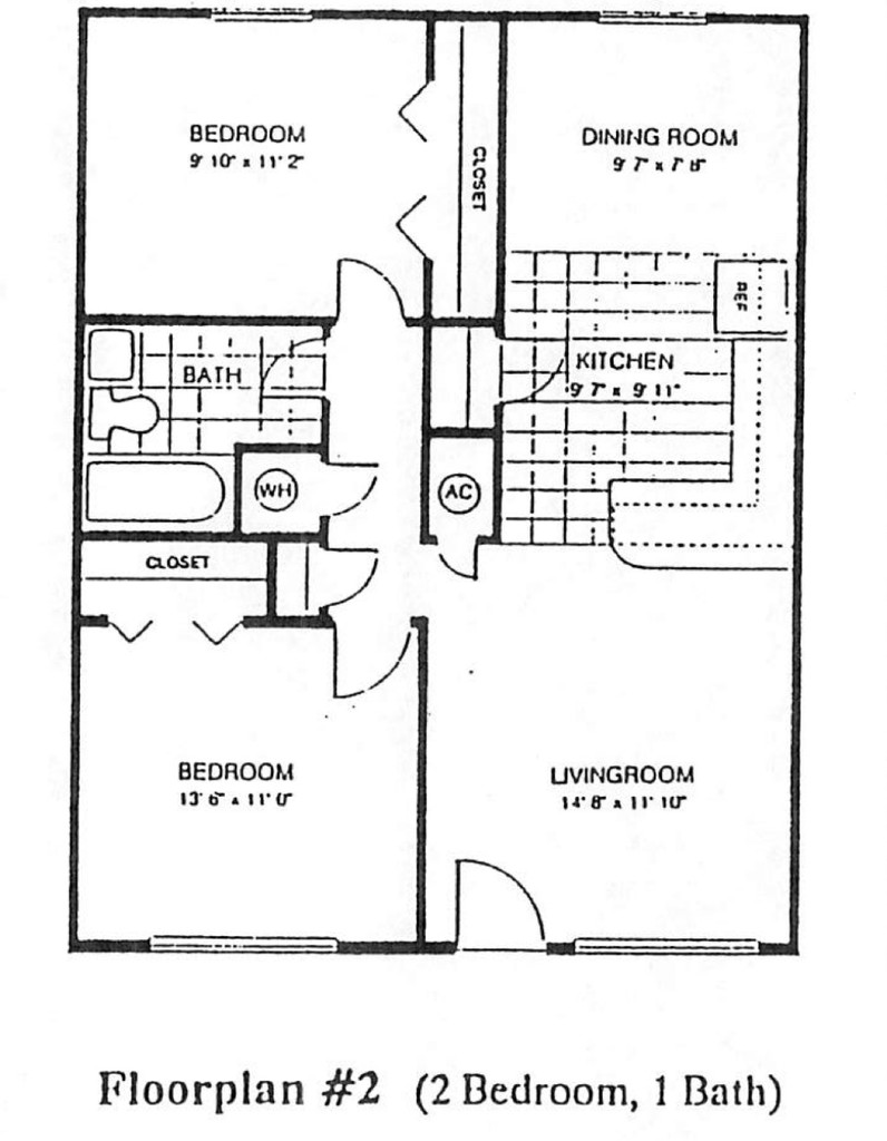 Apartment Model: 2 Bed 1 Bath2 Bedroom, 1 Bath, 788 sq ftUnavailable2 Bed 1 Bath - Floorplan 1 3 Bedrooms