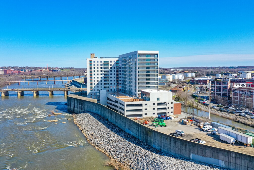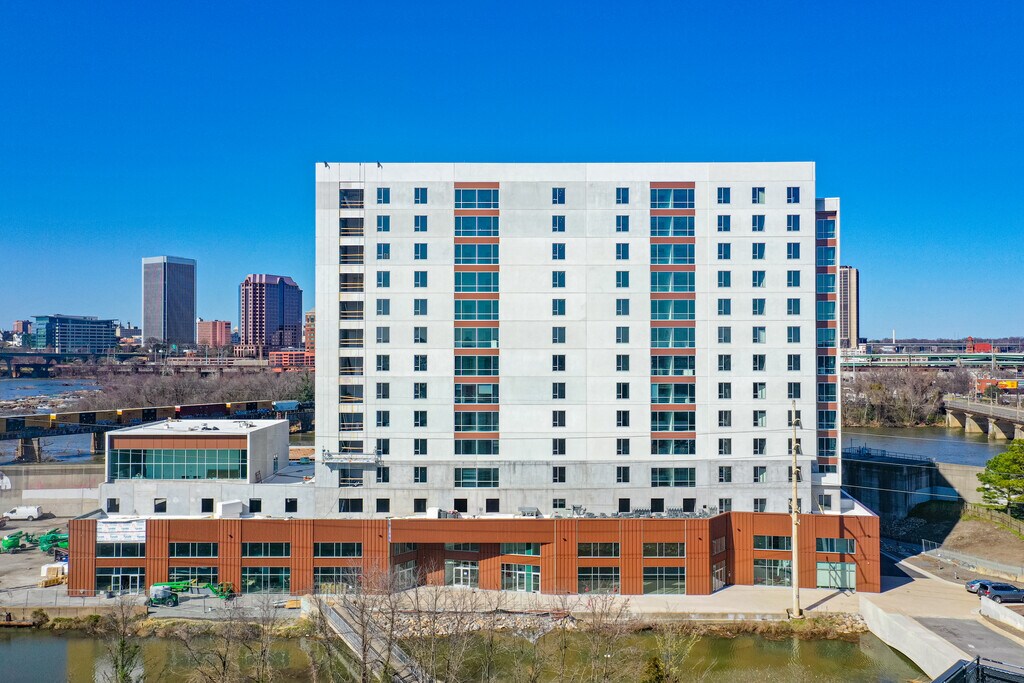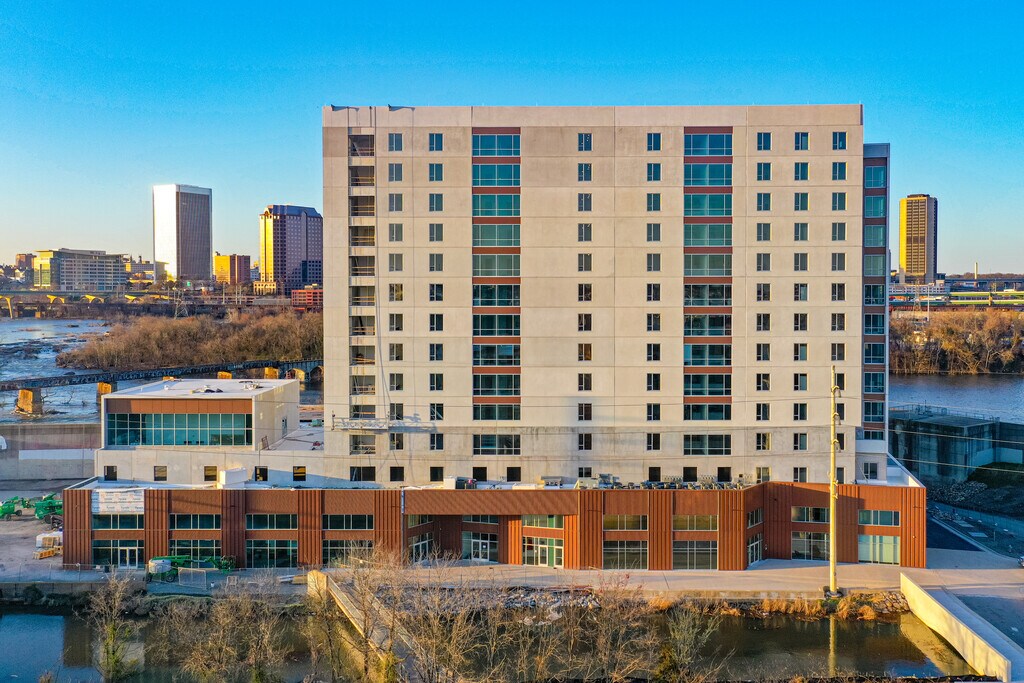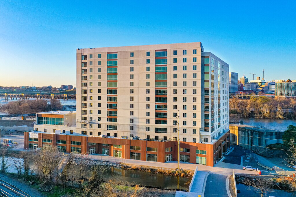 Elevate your life to luxury at South Falls Tower in Manchester, Richmond. Located along the south side of the James River, South Falls Tower takes first-class living to new heights with modern floorplans, state-of-the-art amenities, and the conveniences of downtown living. Located along the south side of the James River, South Falls Tower takes first-class living to new heights with modern floorplans, state-of-the-art amenities, and the conveniences of downtown living. The 14-story building features studio, one, and two-bedroom floorplans boasting living and dining spaces, floor-to-ceiling windows with unobstructed city river views and plank-style flooring. The gourmet kitchens feature quartz countertops, custom flat-panel cabinetry, and stainless steel appliances. Additional highlights include in-unit washer and dryer, private balconies, and excellent storage.
