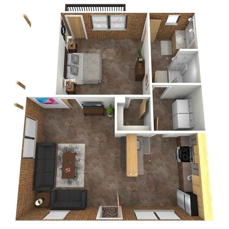 South Front apartments, blends the great bones of historic buildings with modern comforts and contemporary sensibility. Exposed brick and polished concrete floors and counters highlight custom artisan cabinetry and stainless steel appliances. Luxuries, including garden tubs, tiled showers, and private patios, offer the perfect indulgences and transform South Front from a mere apartment to your sophisticated home. Call us today and reserve your home in the neighborhood that has been nominated as one of the best apartments in Wilmington, NC. All renderings and/or images used are for illustrative purposes only and are intended as a general reference. Interior features, finishes, layout, sizes, square footage, and/or dimensions are approximate and may vary depending on actual home selected. Resident agrees that they have not relied on any representations about square footage or dimensions in deciding to enter into a lease agreement.