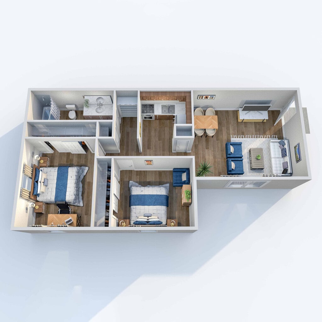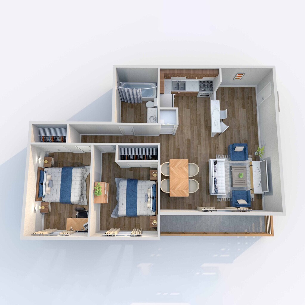 2 Beds, 1.5 Baths, 975 sq ftAvailable NowLargest 2 BedroomThis is the largest 2 Bedroom at this PropertyModel Gallery