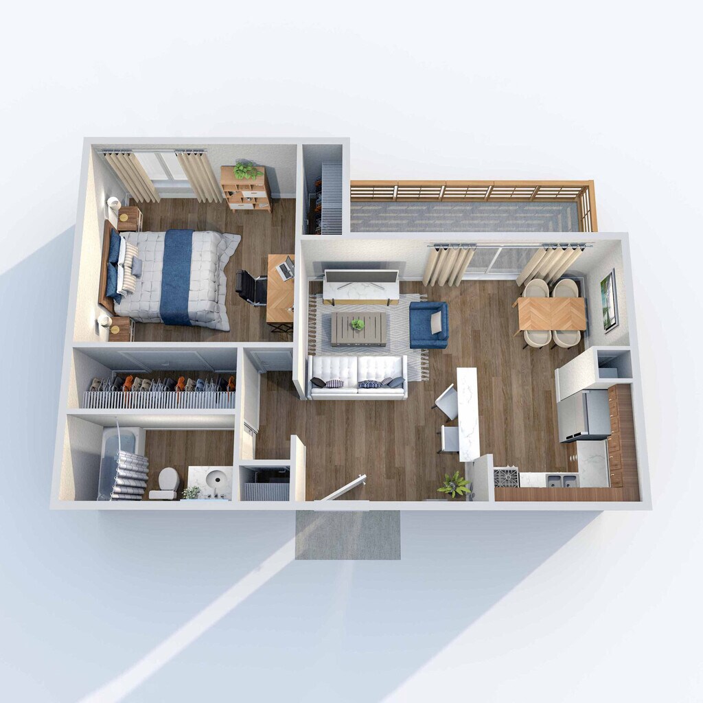 1 Bed, 1 Bath, 740 sq ftModel Gallery