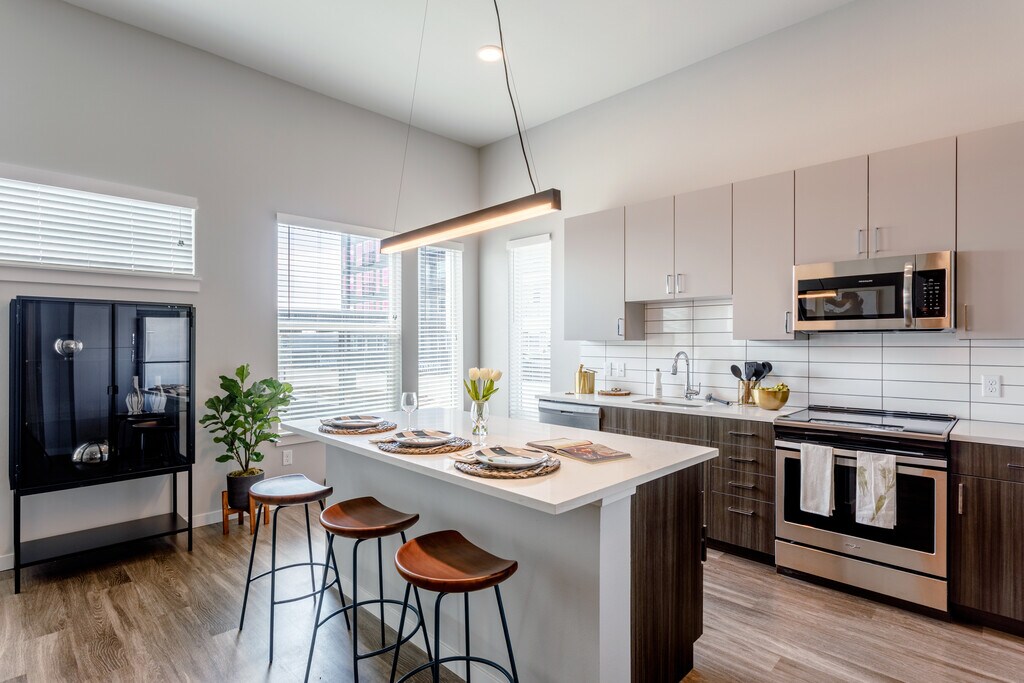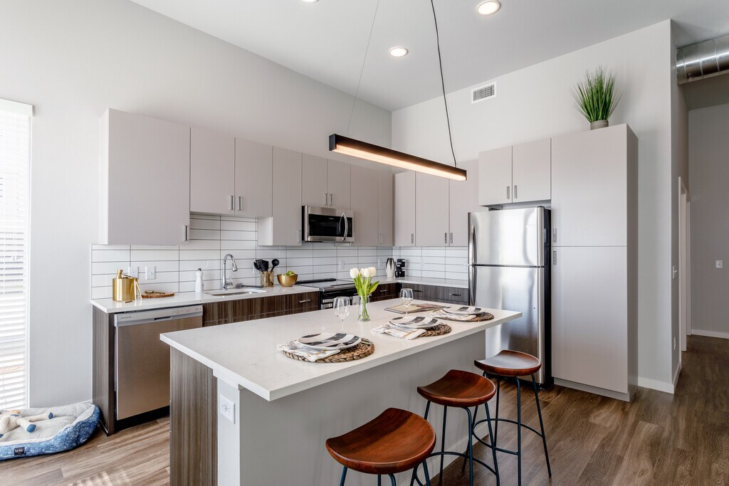 With the Rocky Mountains out the window and city life at your fingertips, South Main Station has everything you need. Our studio, one- and two- bedroom apartments feature modern finishes such as two-toned cabinetry, rich wood-like vinyl plank flooring, and decorative tile backsplash. Enjoy unique amenities such as rooftop sky deck with breathtaking mountain and sunset views, DIY garage and repair room, fitness center with rowers, boxing equipment and more and coworking space for at-home working made easy. Walk to breweries, restaurants, shops or jump on your bike and explore the beauty that surrounds you.