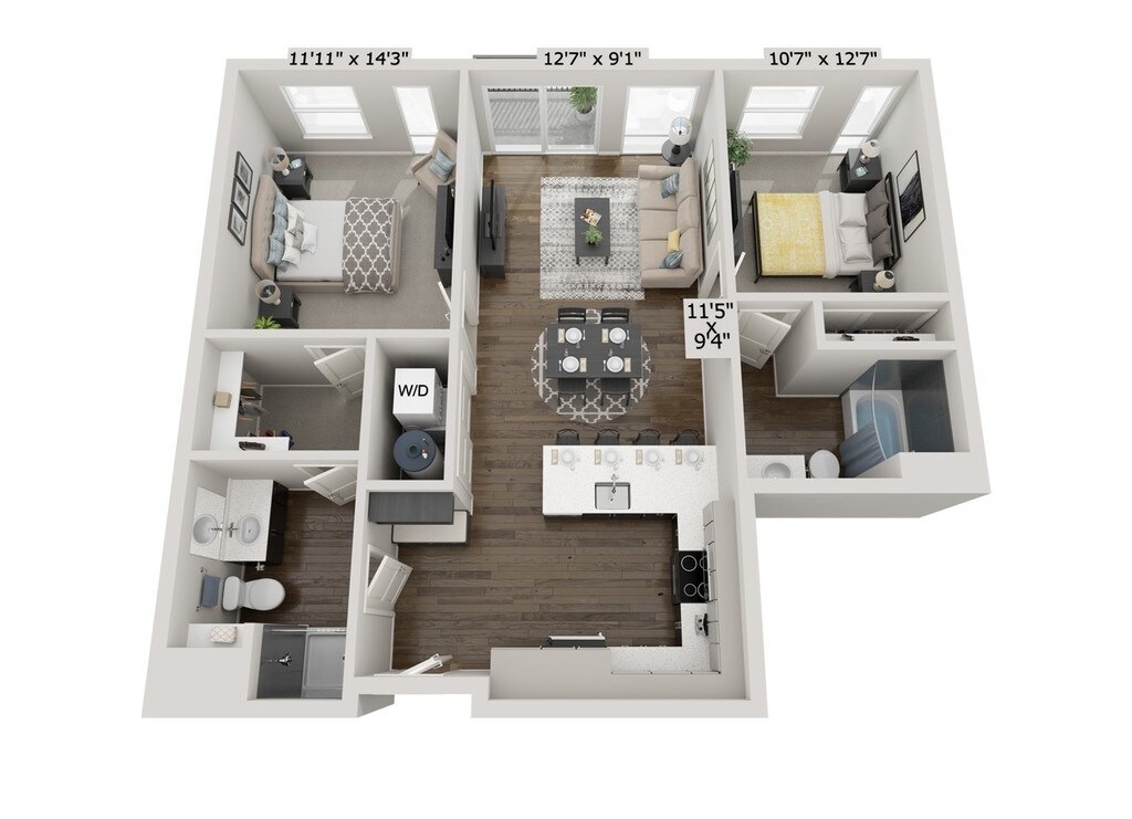 - Full-size washer/dryer