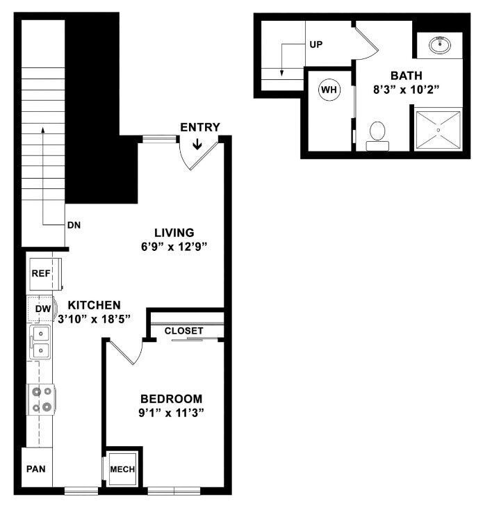 1 Bed, 1 Bath, 509-535 sq ftAvailable NowModel Gallery