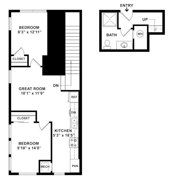 2 Beds, 1 Bath, 588-616 sq ftAvailable NowModel Gallery