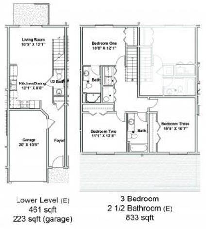 3 Bedroom 2.5 Bathroom - Floorplan 1 3 Bedrooms 2.5 Bathrooms