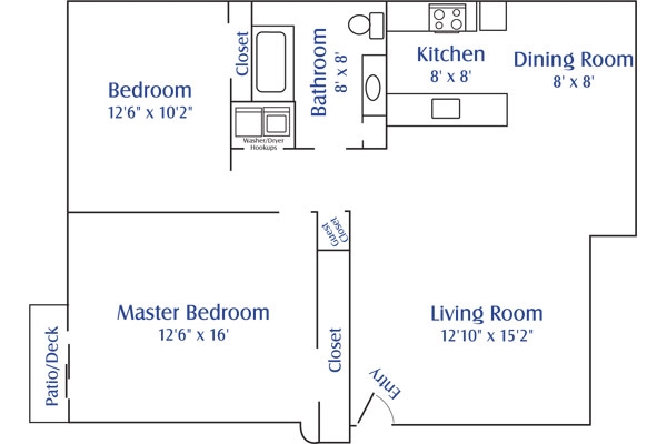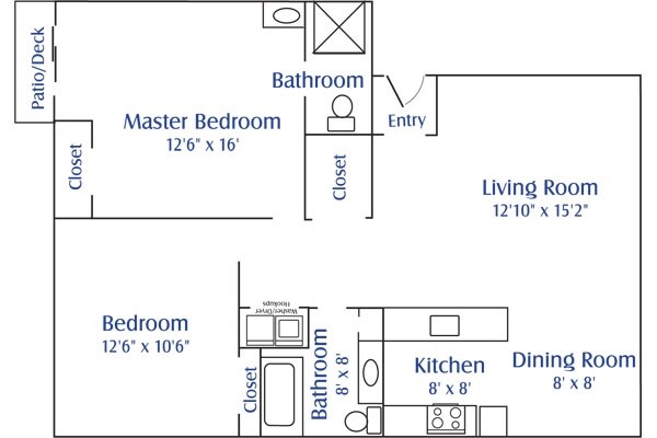2 Bed/1 Bath - Floorplan 1 2 Bed/2 Bath