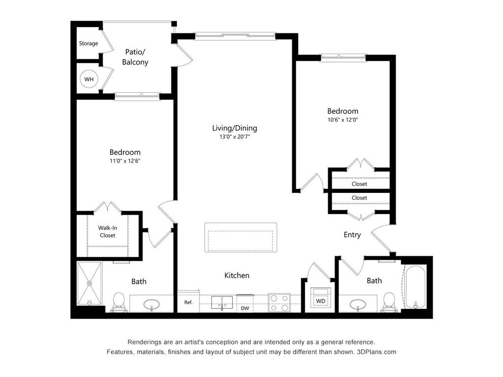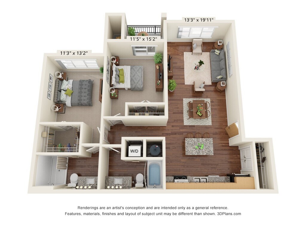 Apartment Model: Two Bedroom D2 (60%)$1,7402 Bedroom, 2 Bath, 1080 sq ftAvailable Now![]()