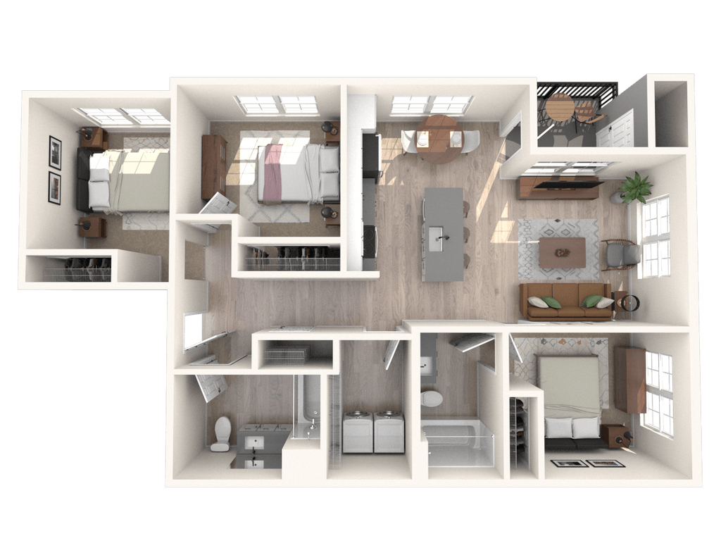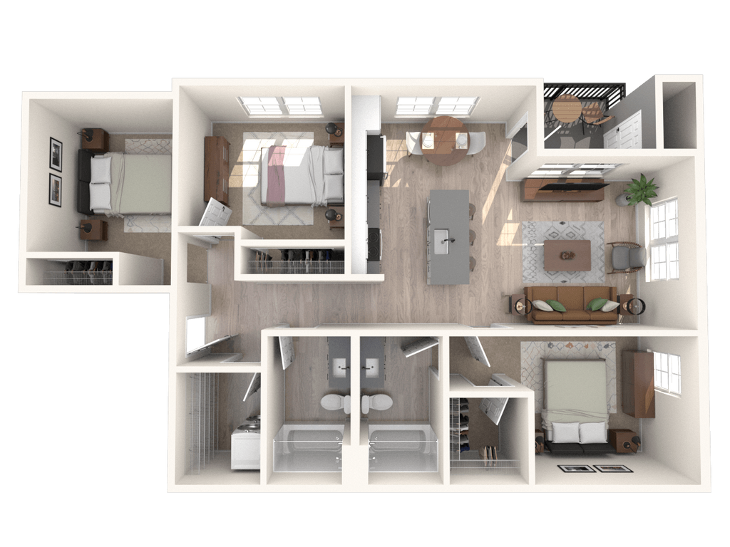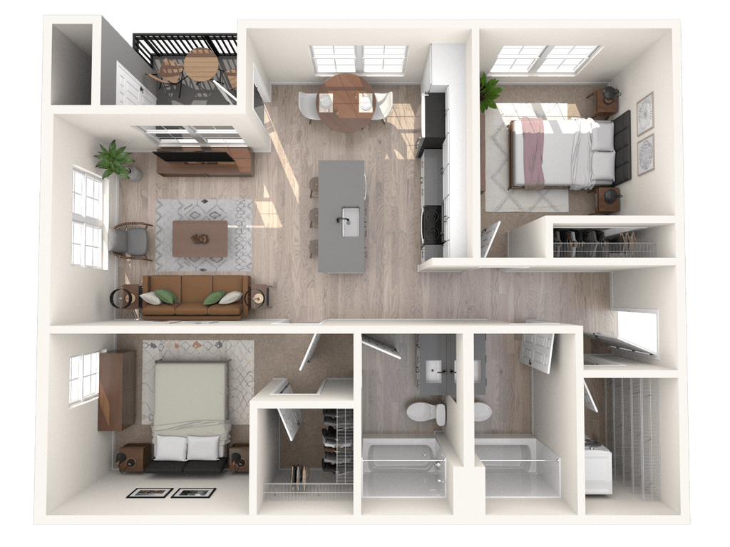 Apartment Model: West - 2 Bed CFrom $1,9612 Bedroom, 2 Bath, 985-1013 sq ftAvailable Now![]()