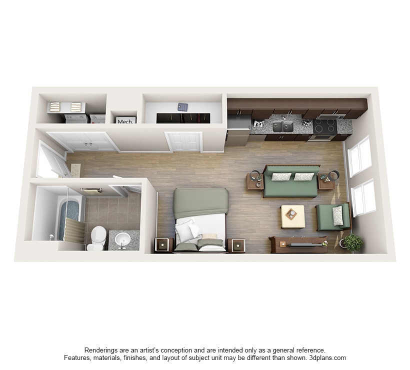 Studio, 1 Bath, 540 sq ftAvailable NowLargest StudioThis is the largest Studio at this PropertyModel Gallery