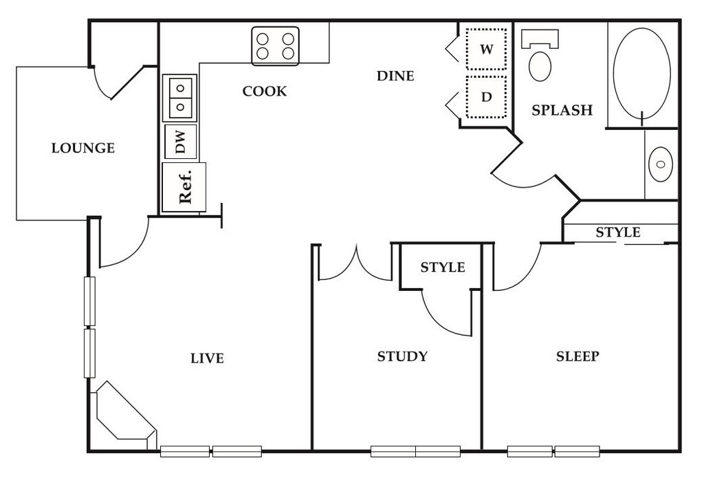 1 Bed, 1 Bath, 663 sq ftAvailable NowModel Gallery