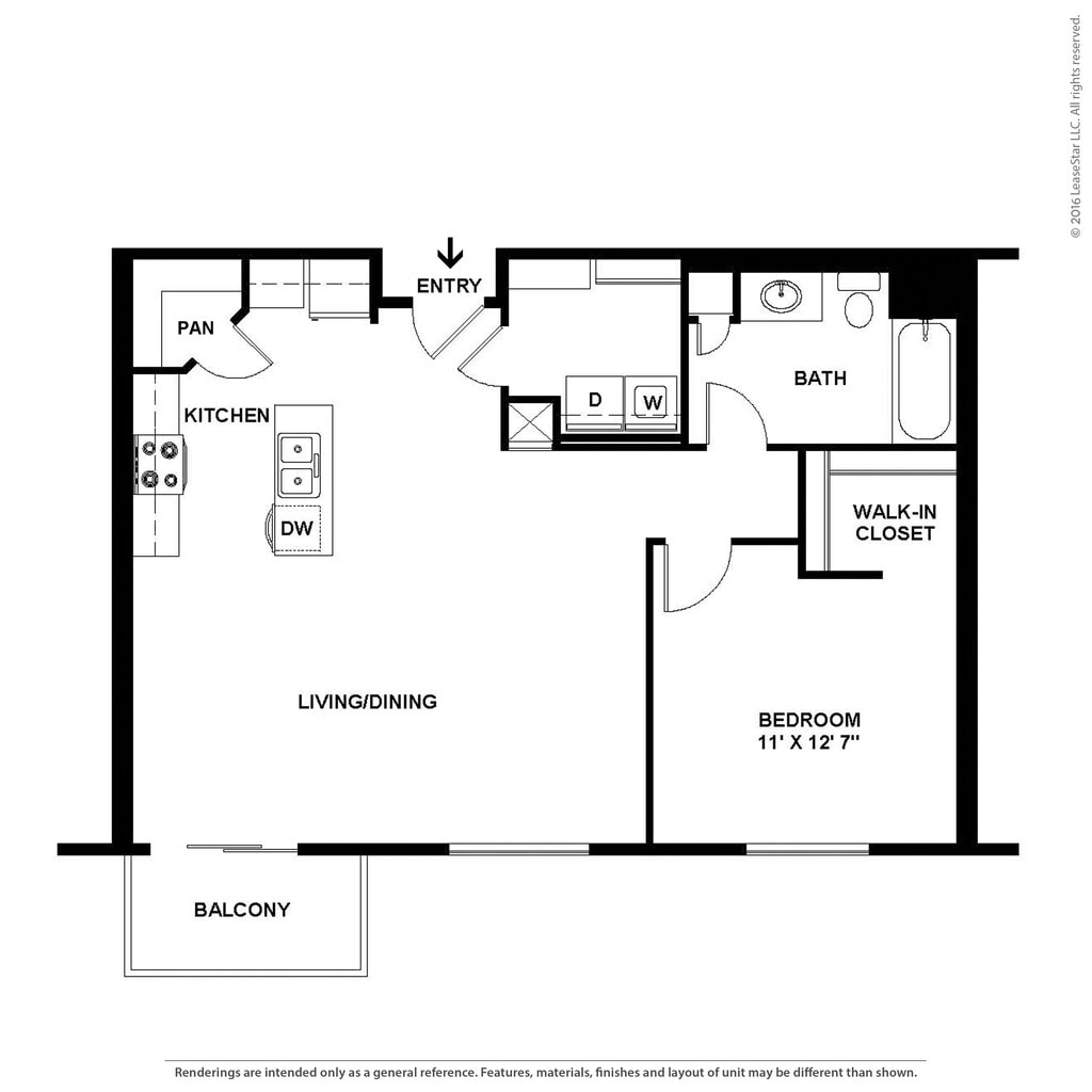 1 Bed, 1 Bath, 581 sq ftModel Gallery