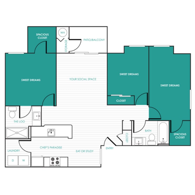 Apartment Model: Floor Plan D$1,9573 Bedroom, 2 Bath, 1300 sq ftAvailable Now![]()