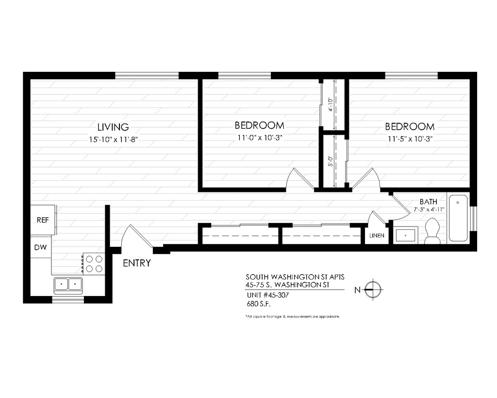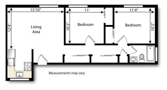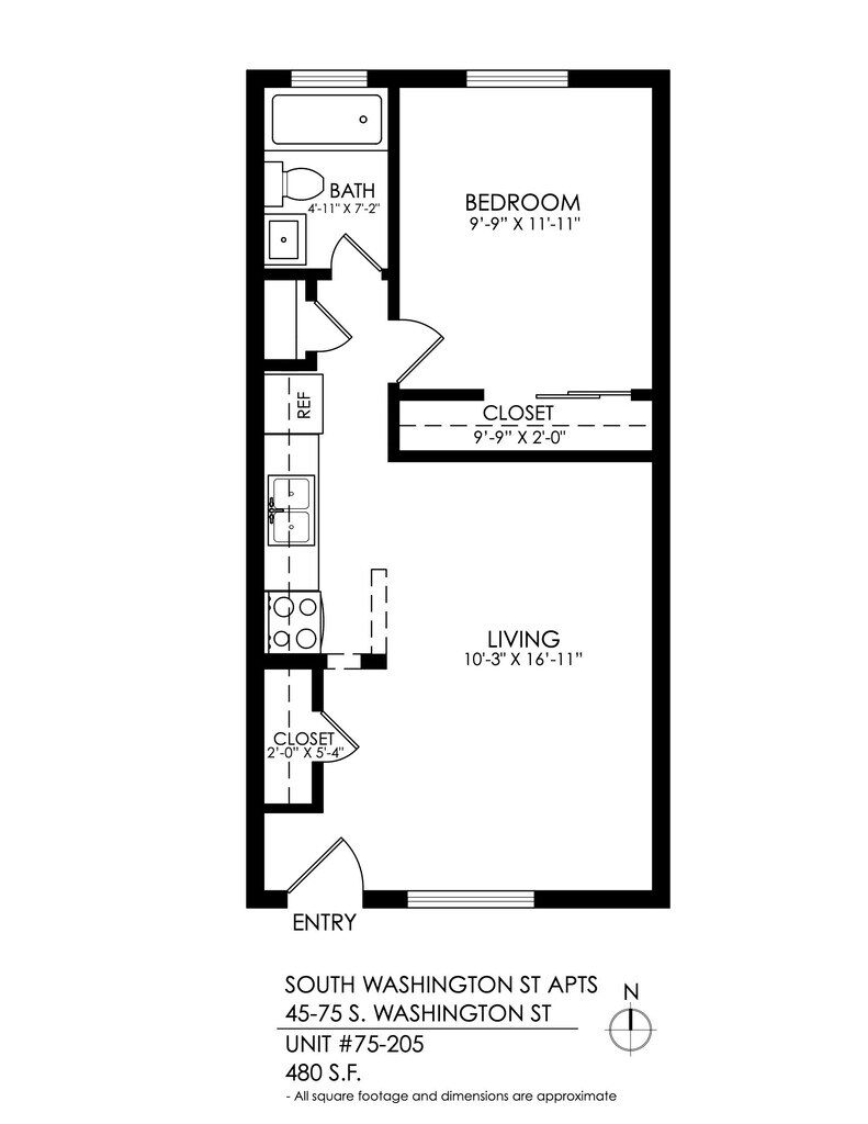 South Washington Apts - 1 Bed, 1 Bath - Floorplan 11 ![]()