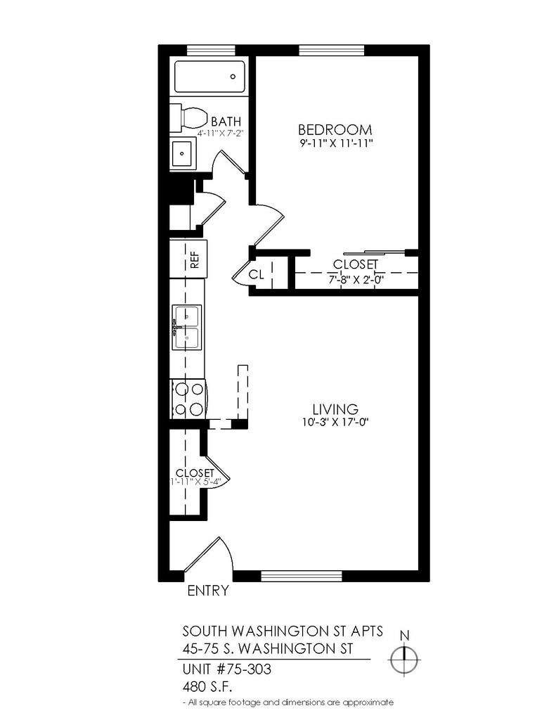 South Washington Apts - 1 Bed, 1 Bath - Floorplan 17 ![]()