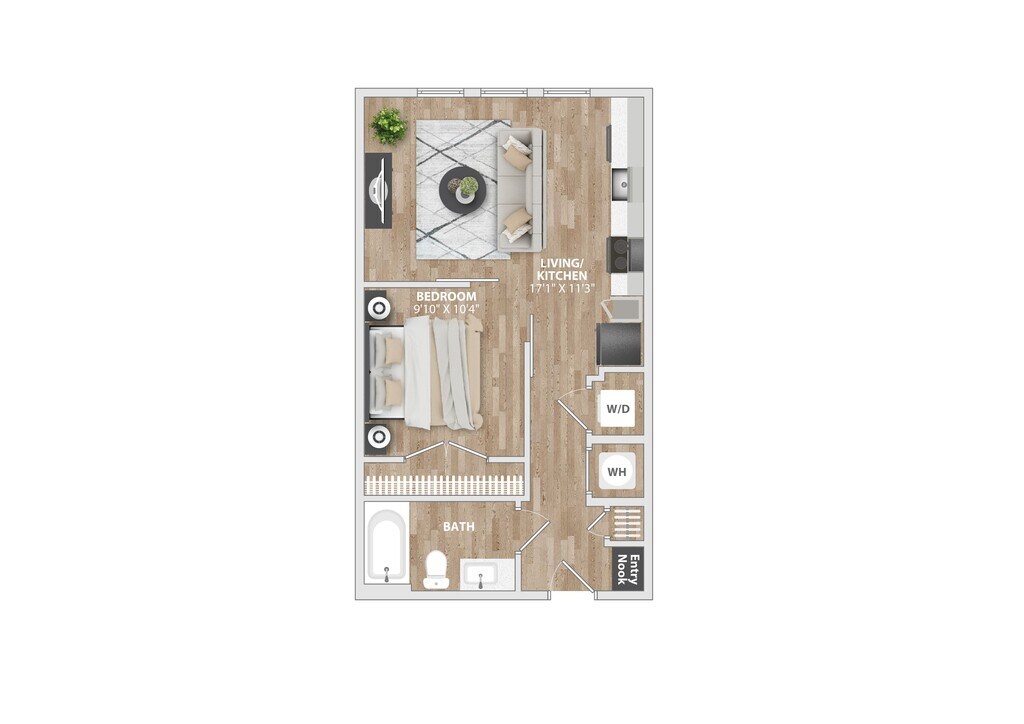 Apartment Model: A1AStudio, 1 Bath, 558 sq ftAvailable January 7, 2026A1A - Floorplan 1 Apartment Unit: 135Apartment Model: A1AStudio, 1 Bath, 558 sq ftAvailable January 7, 20261 Bedroom
