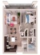 Studio, 1 Bath, 593 sq ftAvailable NowModel Gallery