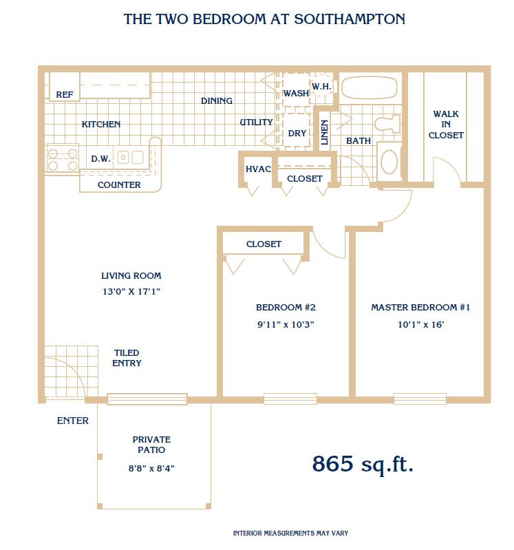 2 Beds, 1 Bath, 865 sq ftAvailable NowModel Gallery