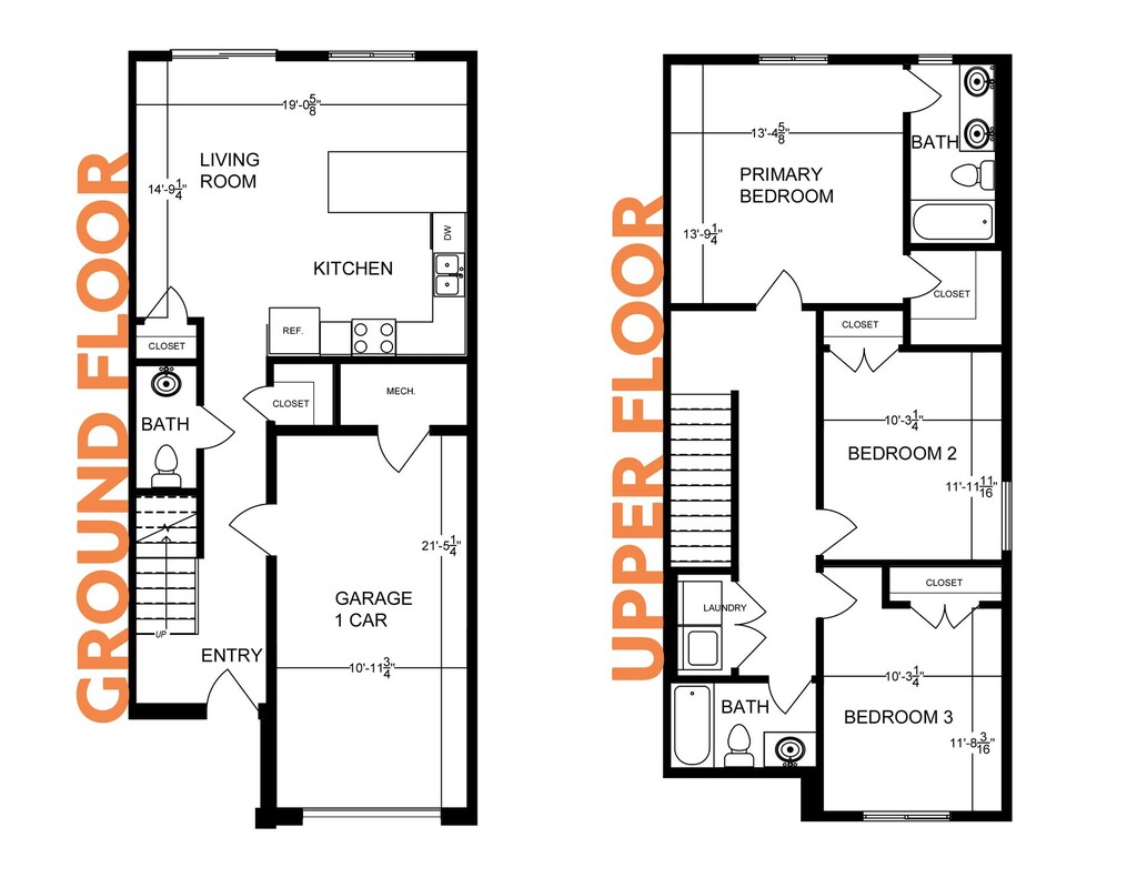 3x2.5 C1 - 1 Car Garage (Teton Crest) - Floorplan 6 3x2.5 C2 - 2 Car Garage (Colter Bay)
