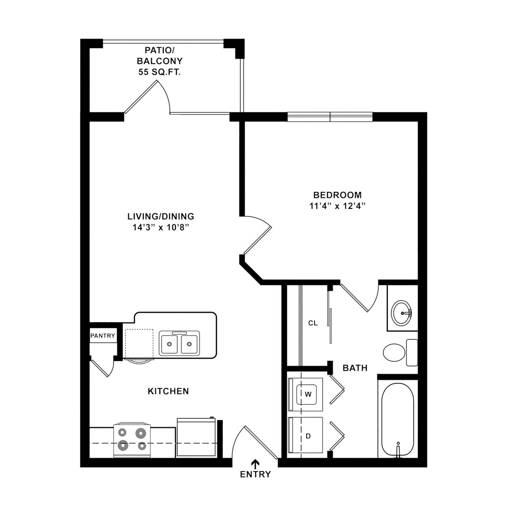 1 Bed 1 Bath 607 SqFt (552 Net)