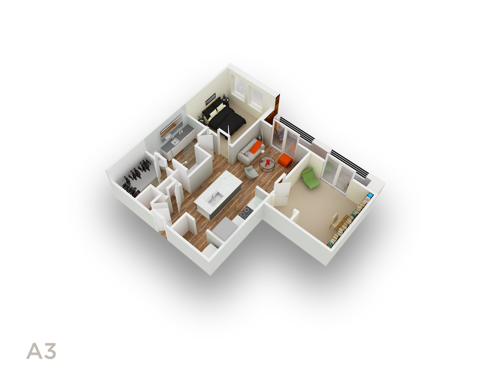 Apartment Model: A3From $2,6411 Bedroom, 1 Bath, 833 sq ftAvailable June 28, 2026![]()