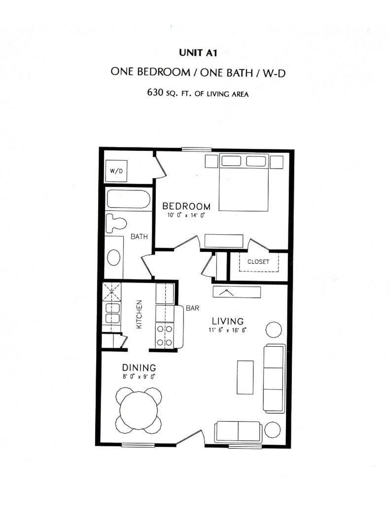 Apartment Model: A1From $8601 Bedroom, 1 Bath, 634 sq ftAvailable NowFloorplansPhotos![]()