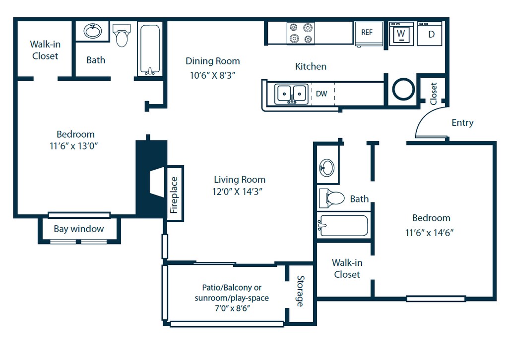 1 Bed, 1 Bath, 860 sq ftAvailable NowLargest 1 BedroomThis is the largest 1 Bedroom at this PropertyModel Gallery