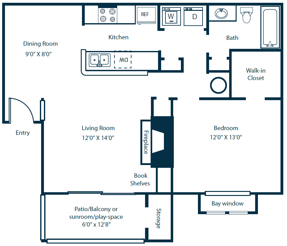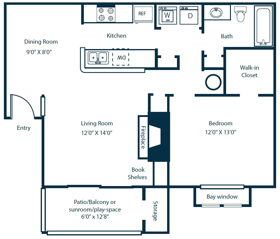 Apartment Model: A2From $1,2751 Bedroom, 1 Bath, 784 sq ftAvailable Now![]()