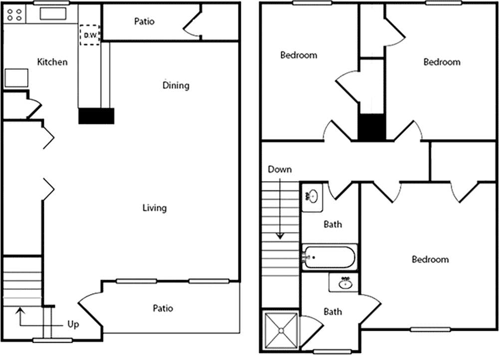 Apartment Model: 3x2 Townhome 60% Income Restriction$9993 Bedroom, 2 Bath, 1068 sq ftAvailable NowFloorplansPhotos![]()