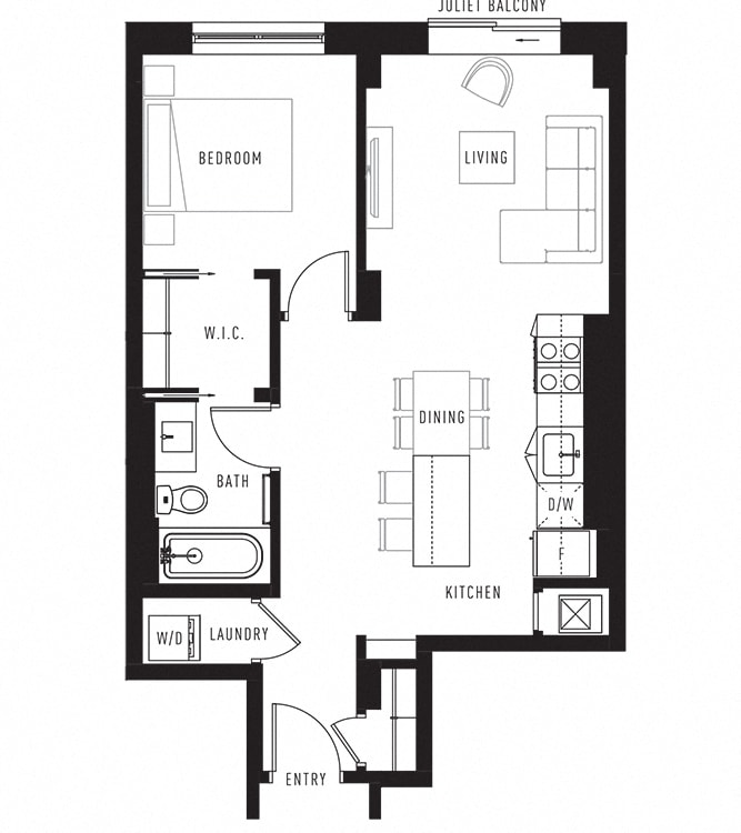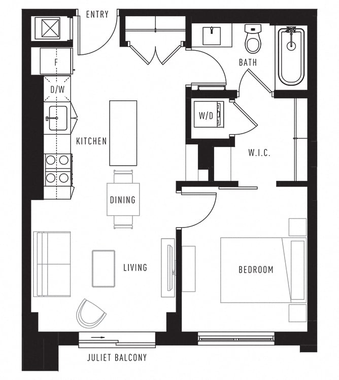 Apartment Model: Plan F1 Bedroom, 1 Bath, 568 sq ftAvailable March 1, 2026![]()