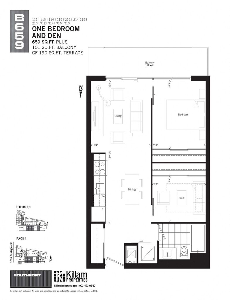 One Bedroom + Den - Floorplan Apartment Unit: 111Apartment Model: One Bedroom + Den1 Bedroom, 1 Bath, 659 sq ftAvailable May 1, 2026![]()