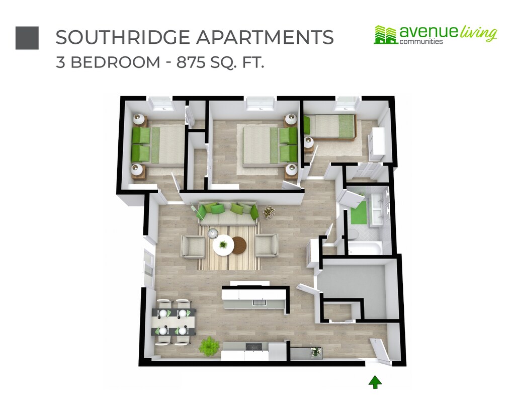 Southridge Apartments offers 1 to 3 Bedroom apartments starting from $919 and having 465–875 sq ft. Here is the current pricing and availability: