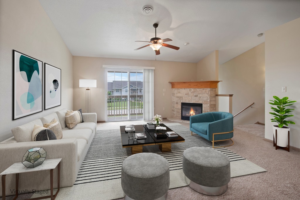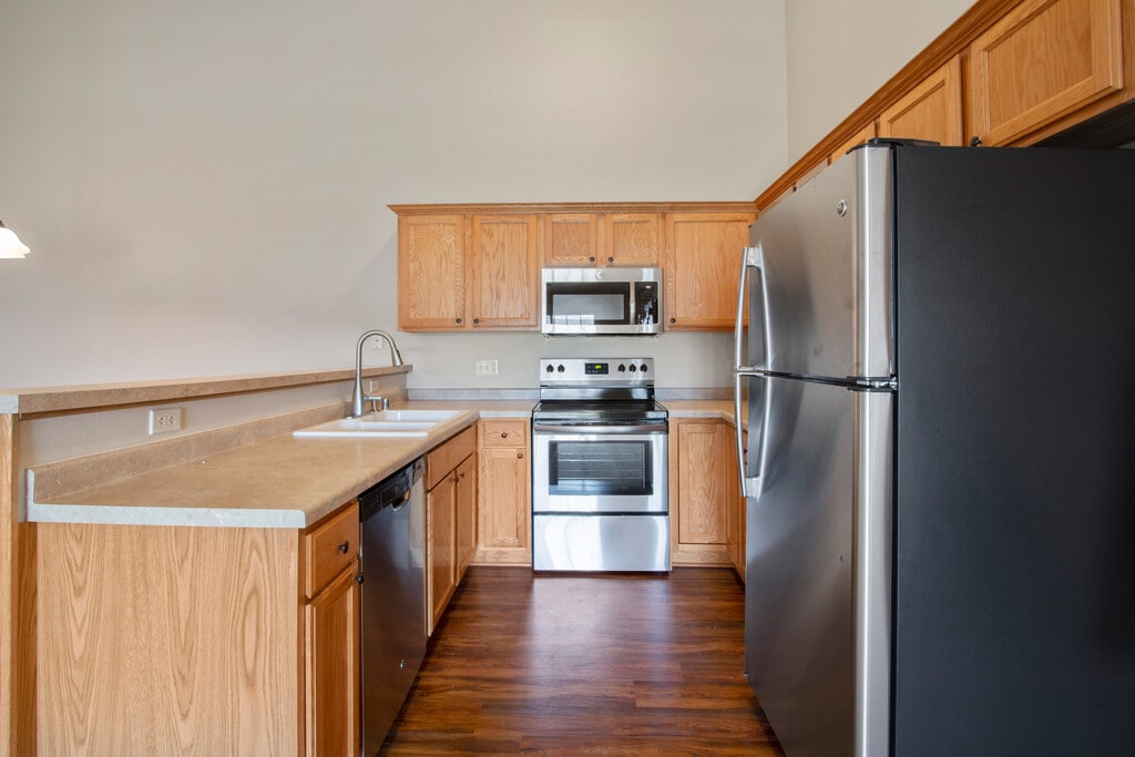 All Southwind Prairie apartments are 2-bedroom/2-full bath units and include a fireplace, private entry, full-size in-unit laundry facilities, attached 2-car garage, walk-in closets and vaulted ceilings (2nd floor units). Southwind Prairie Apartments are located in a natural setting in beautiful Lake Geneva, Wisconsin and are within a short distance of shopping, entertainment and dining. We are mere minutes to shopping, lake, and recreational facilities. Our caring, customer-focused, responsive staff will address your needs promptly and courteously. Enjoy our fabulous clubhouse with kitchen amenities, fitness center, , business center, and our spectacular resort-style outdoor heated pool.