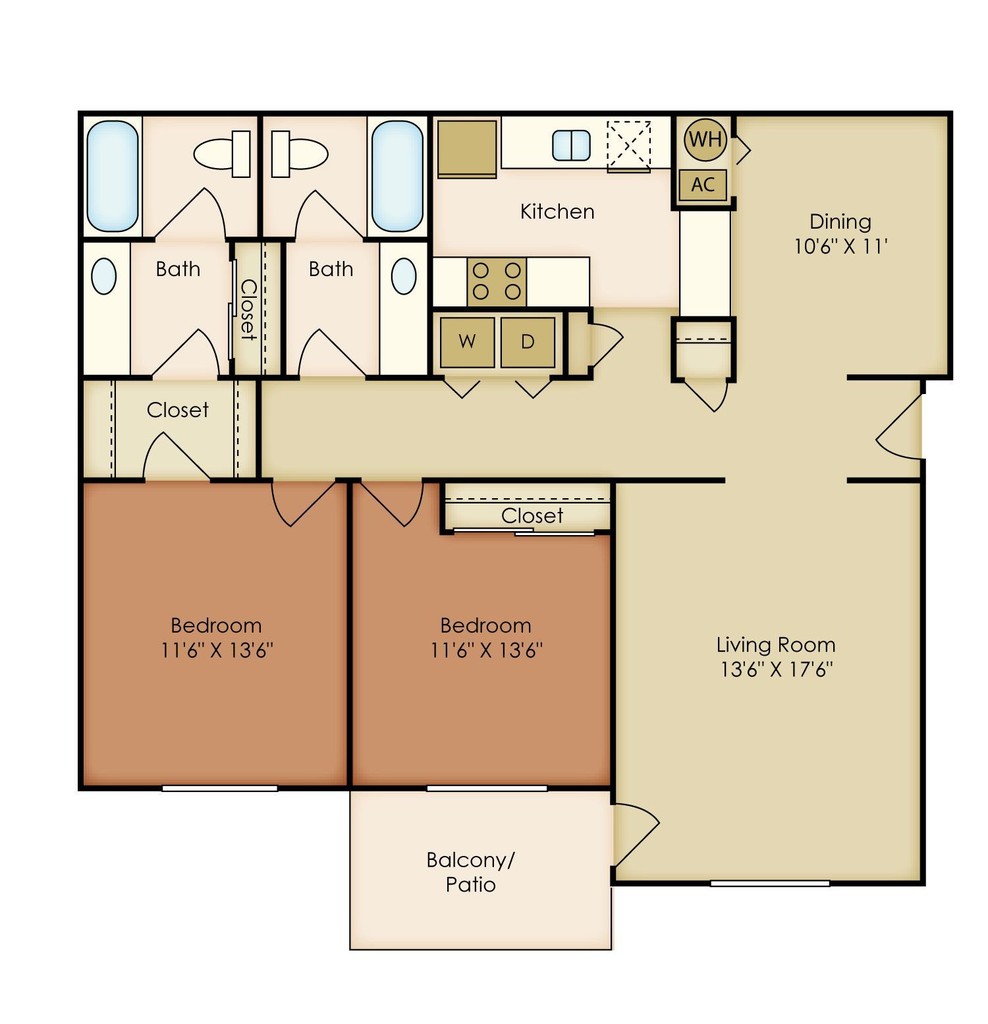 2 Beds, 2 Baths, 1205 sq ftAvailable NowModel Gallery
