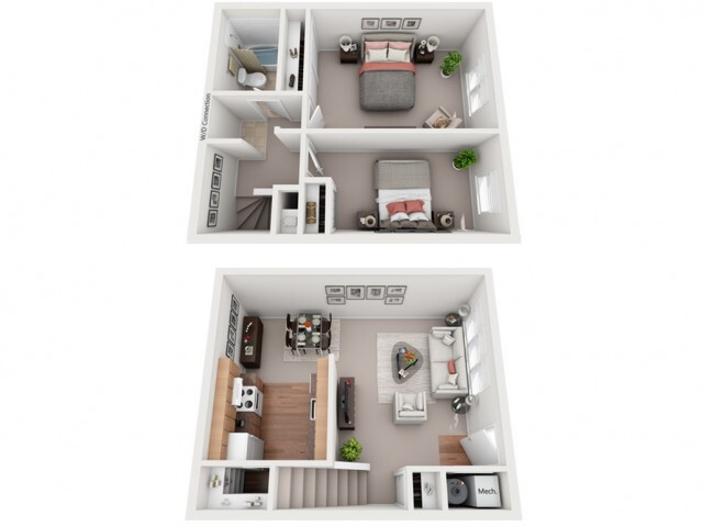 Apartment Model: 2 TOWN2 Bedroom, 1 Bath, 800 sq ftAvailable Now![]()