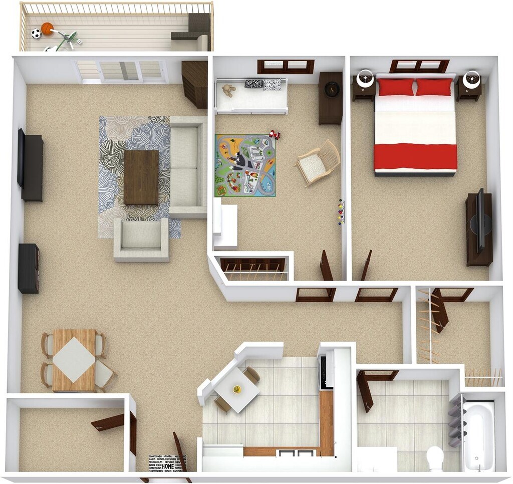 2 Beds, 1 Bath, 860 sq ftModel Gallery