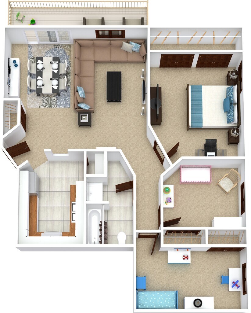 2 Beds, 1 Bath, 970 sq ftModel Gallery