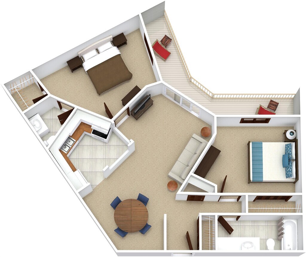 2 Beds, 1.5 Baths, 980 sq ftLargest 2 BedroomThis is the largest 2 Bedroom at this PropertyModel Gallery