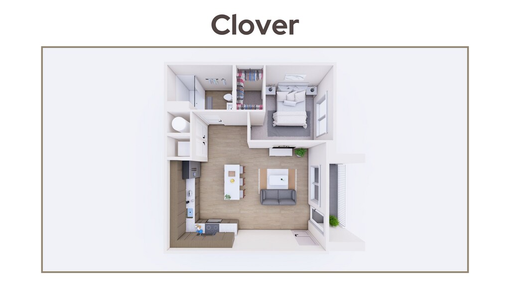 Apartment Model: Clover$1,4251 Bedroom, 1 Bath, 658 sq ftAvailable June 7, 2026FloorplansPhotos![]()