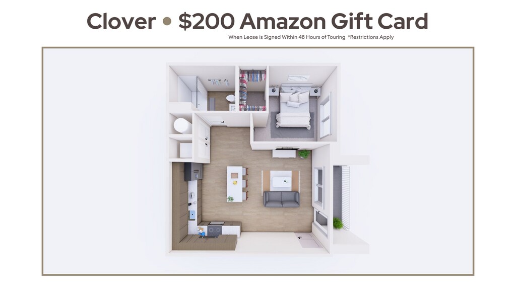 Clover - Floorplan 13 Apartment Unit: 2-204Apartment Model: Clover$1,4251 Bedroom, 1 Bath, 658 sq ftAvailable June 7, 20262 Bedrooms