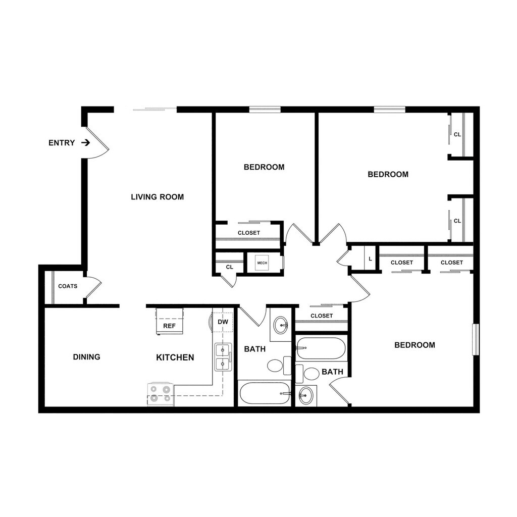 Two Bedroom - Floorplan 3 3 Bedrooms