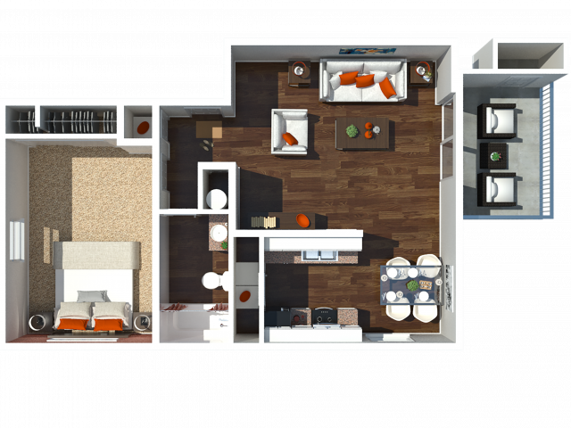 1 Bed, 1 Bath, 616 sq ftAvailable NowModel Gallery